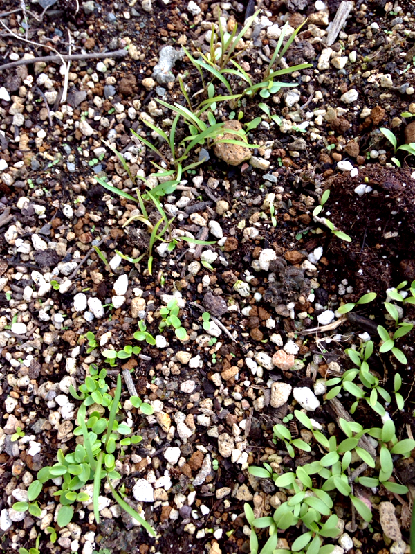 ポピーやチドリソウやオルラヤの芽が出てきた♪