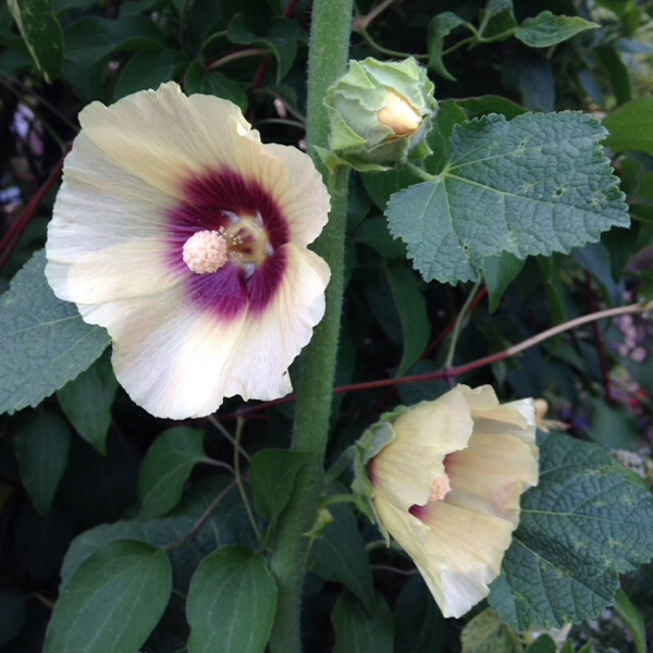 明日から雨で梅雨入りかなぁと思ってたらタチアオイが開花=3