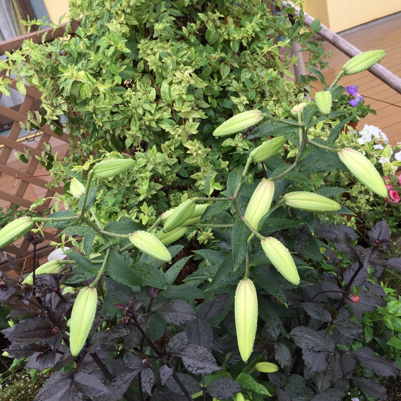去年植えたコンカドールの蕾がデカイ=3